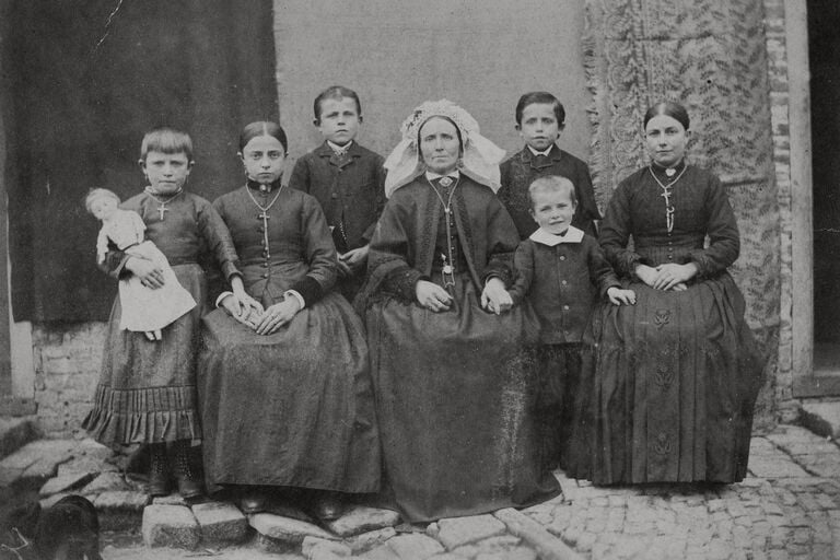 (Bild unten: Die Familie der Witwe J.P. im Jahr 1890. Links und rechts hinter der Witwe ihre Söhne Janus und Gust, die im Alter von 11 und 9 Jahren in das Geschäft einstiegen.)