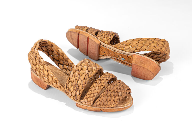 (Bild oben: Alle Rohstoffe zur Herstellung von Schuhen werden von den Besatzungsmächten für die Kriegsmaterialproduktion beschlagnahmt. Mit Binsen und Holz können 1943 noch in kleinem Umfang Schuhe hergestellt werden.)