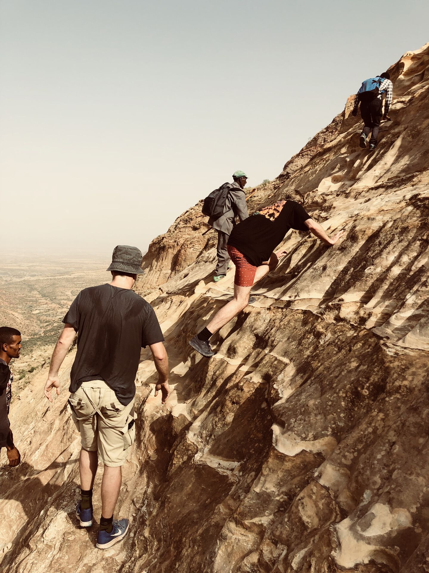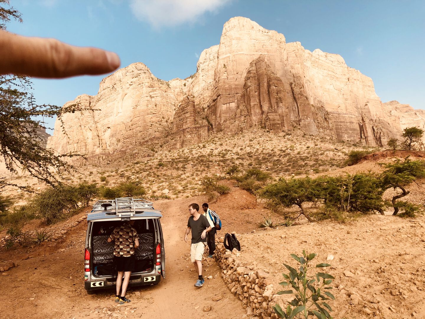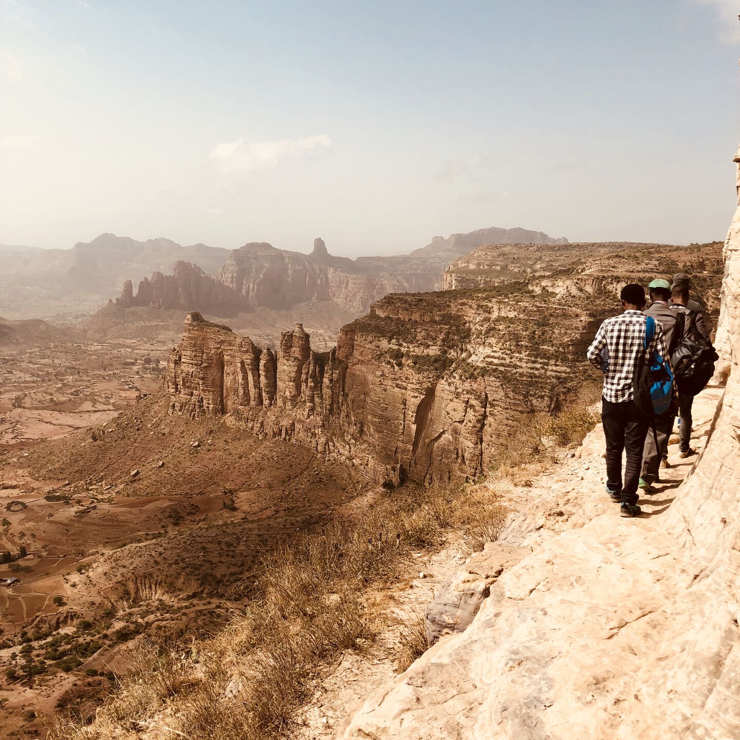 May 31st, Tigray Ethiopia. At the beginning of our hike to a beautiful viewpoint, our local mountain guide tells us that we’re going on a ‘medium’ tour. Soon we find out that there’s nothing ‘medium’ about it. We climb for an hour along steep precipices, between gorges and over loose stones. But it’s worth it. The views and the grandeur of the landscape were simply amazing.