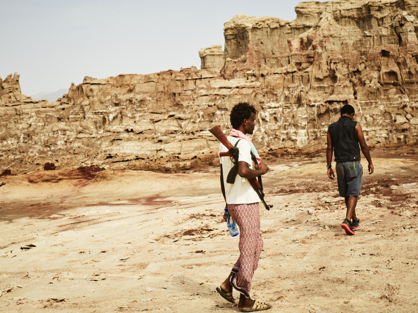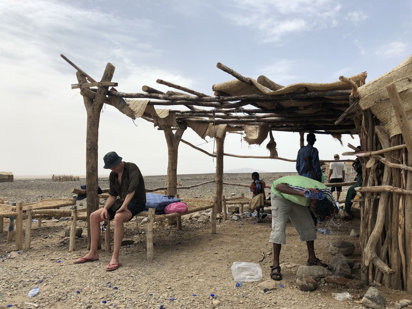 June 2nd, Afar Ethiopia. We’ve been driving for a few hours and now we’ve arrived in hell on earth. We get out of the car in a desert-like landscape and there’s absolutely nothing there. It’s at least 46 degrees but the wind blows like crazy. Wind force 7 at least. No cooling anywhere. The drinking water is scorching hot. Our accommodation is a hut made of sticks and straw. The hut is only for cooking. We sleep outside on rickety wooden beds. Our guide has just told us that the local Afar tribe is the most aggressive tribe in all of Africa. “Very aggressive, yes. But no problem, we sleep outside.” We’re supposed to stay here for two nights. Within two minutes, we decided that this wasn’t a good idea. We squeezed all locations and photo shoots into one day and left with squealing tyres after one night.