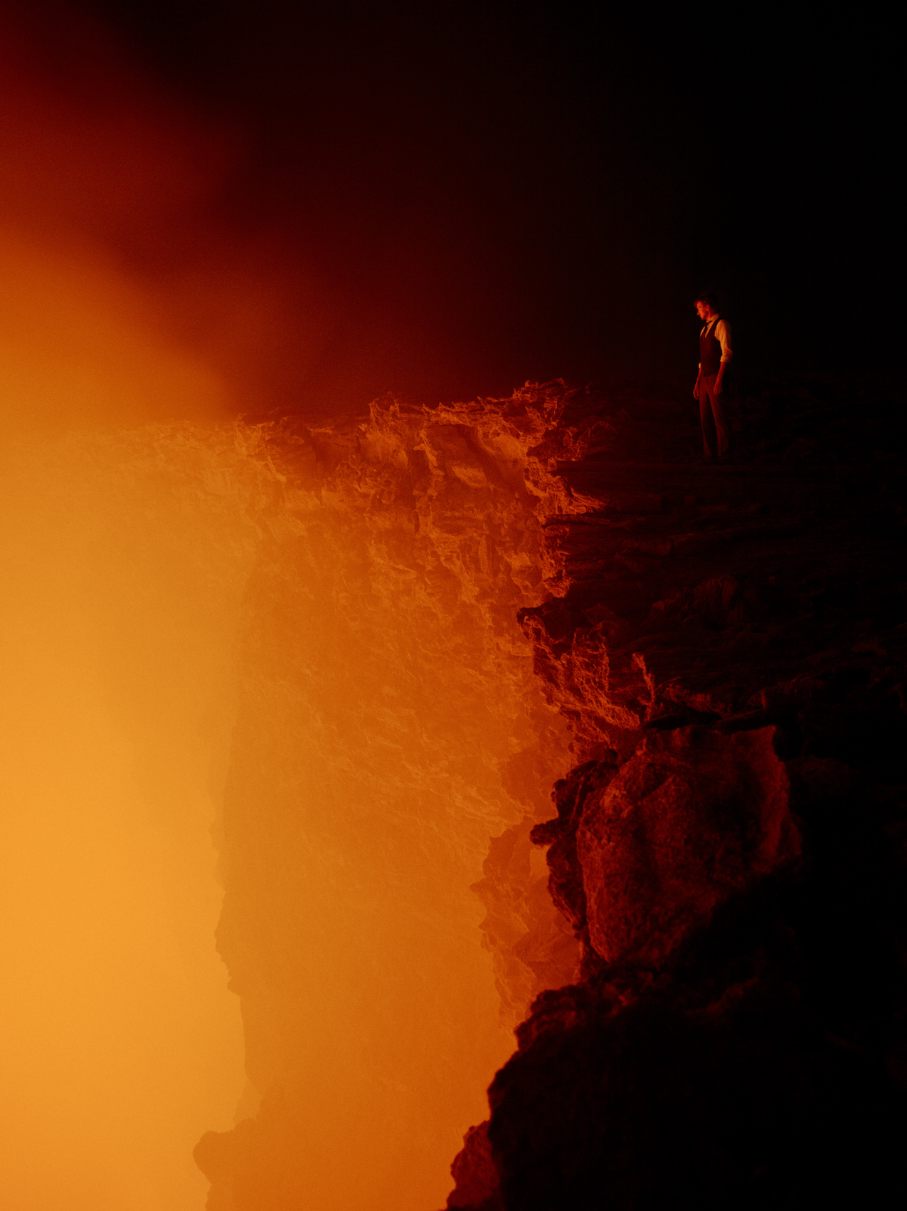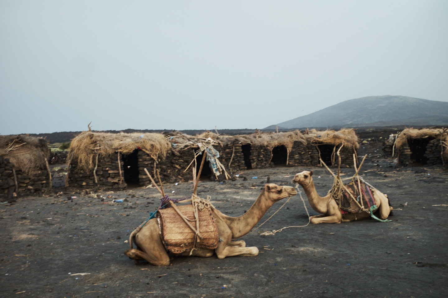 June 1st, Afar Ethiopia. Until now, we’ve been on the high plateau of Ethiopia. That’s the ‘developed’ part of the country with a mild climate. Now we travel to the lowlands, which is the wooden shacks part of the country with the officially hottest climate on earth. We’re going to climb an active volcano in the dark (because during the day it’s too hot to do so). Great plan of course! After a tough hike of more than 10 km, we reach the top of the volcano around 11 pm. I’m standing less than half a metre from the crumbling edge looking down into the crater while the wind is blowing in the direction of the hole. Not very ‘safety first’-like. About 50 metres below, through the sulphur fumes, we can see crazy lava explosions in the crater. The lava lake sounds like a wild ocean, but a few octaves higher. An amazing experience. After surviving this, I put on my suit in the camp a little further down the road and we shoot some amazing photos and videos at the lava lake. We spend the night on top of the volcano in the open air, among all sorts of critters. “If you have to go to the toilet, you can go behind the camels.”