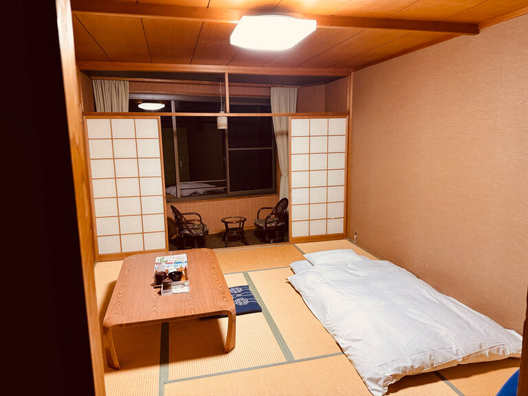 One thing I have learnt on all these distant travels is that the romantic image of things that lead with 'local' or 'traditional' usually have little to do with reality. 'Local breakfast' in Japan is a full dinner including your own bubbling stew with mushrooms next to your plate and a private grill with, by no means odourless, sardines and something tough, cartilaginous. There are as many as eight dishes around my plate with all kinds of things in it. I realise just in time that in the bowl of, ostensibly, bean sprouts, each sprout has two tiny black eyes. The hotel room that night is also... traditional. The bed is a mat on the floor. Next to the mat is a small coffee table with a flat cushion beside it to sit on. The room has no bathroom or shower, just a washbasin. This is one of those moments when you realise how the washbasin got its name.
