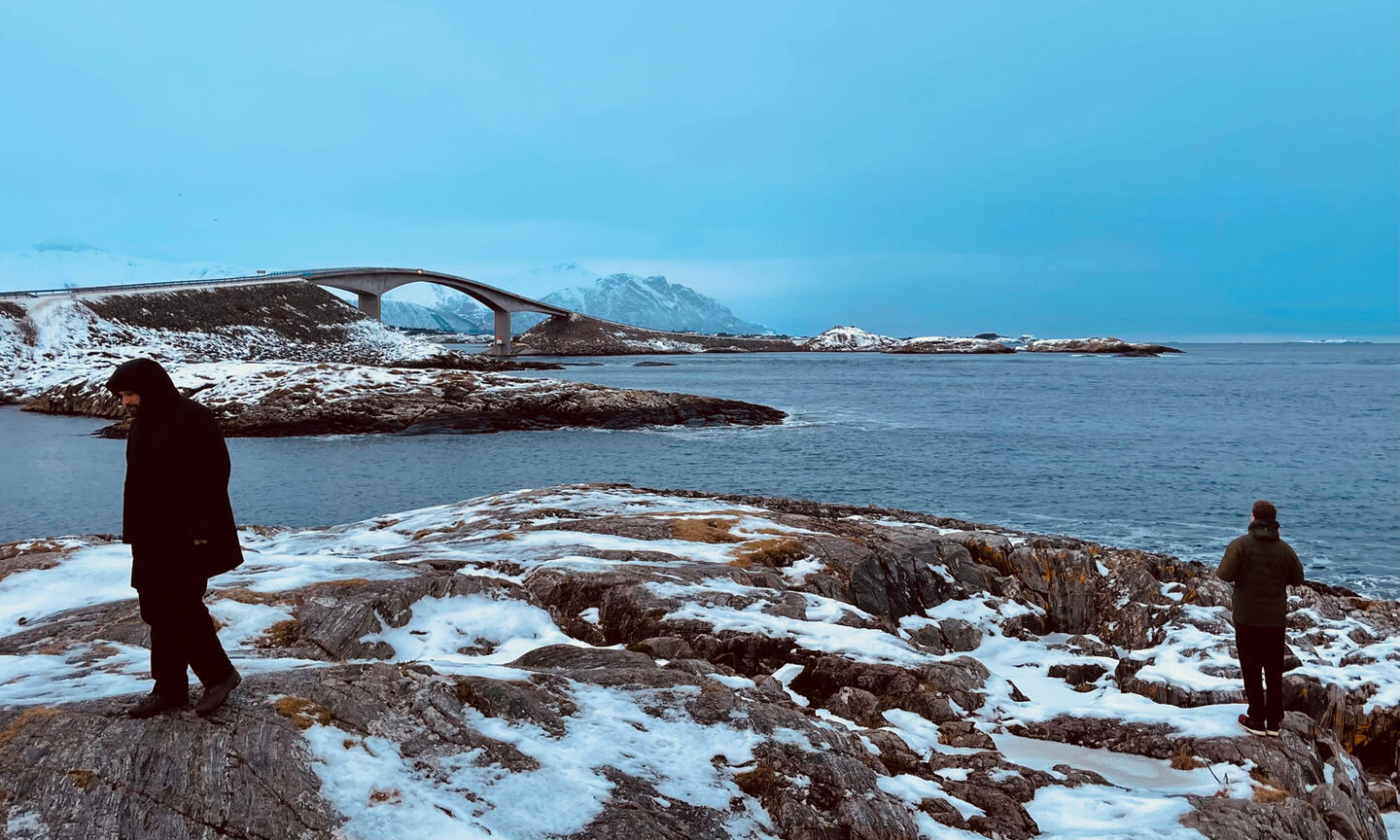 After the hikes, we took a long road trip along the Norwegian Fjords. We drove along the Atlantic Highway, took many ferries, defied a snowstorm, ate Lutefisk and visited a Viking church from the year 600.