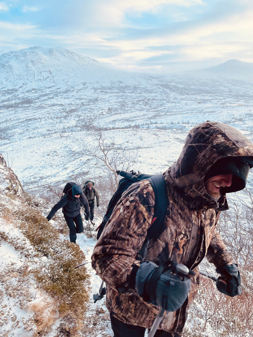 The second hike was one of those experiences you definitely don't want to go through again. We started early in the morning when it was still dark and walked up a mountain for 9 hours, full polar expedition-style. The only thoughts that went through my head for the first two hours were 'insane' and 'why?’ Just before we reached the highest point of the mountain, our guide took a 'technical break'. We had to fasten snowshoes under our shoes. A few metres from where we stopped, the wind blasted freely. We walked across the open plain through a crazy snowstorm. The guide shouted, ‘This is going to be your life for the next few hours'.