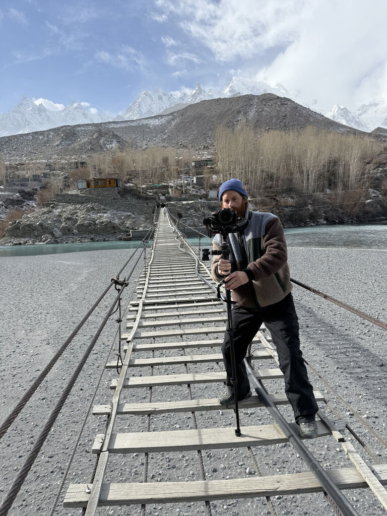We have been warned: domestic flights to Gilgit are often cancelled due to the unpredictable weather in the Himalayas. We land in Islamabad at five in the morning. The flight to Gilgit is scheduled for eleven o'clock. We spend the six hours in between on a bench in a waiting area with a carpet that is already curling up and coming off. Sleep is out of the question. At least, not for us. A little further, a woman in a burka is happily snoring away.