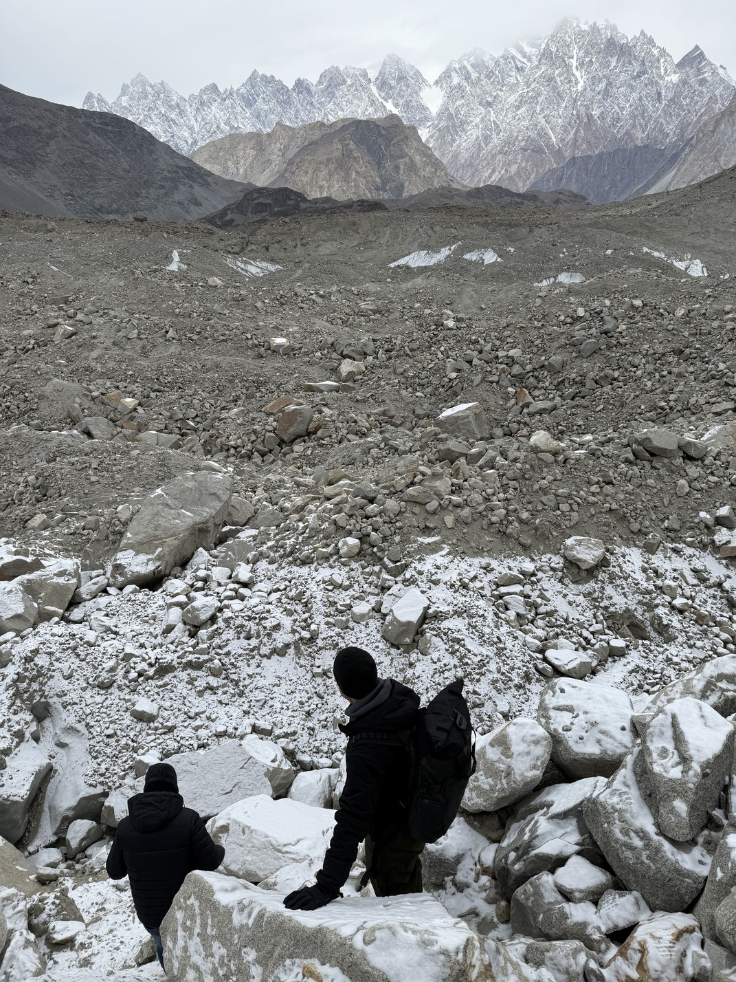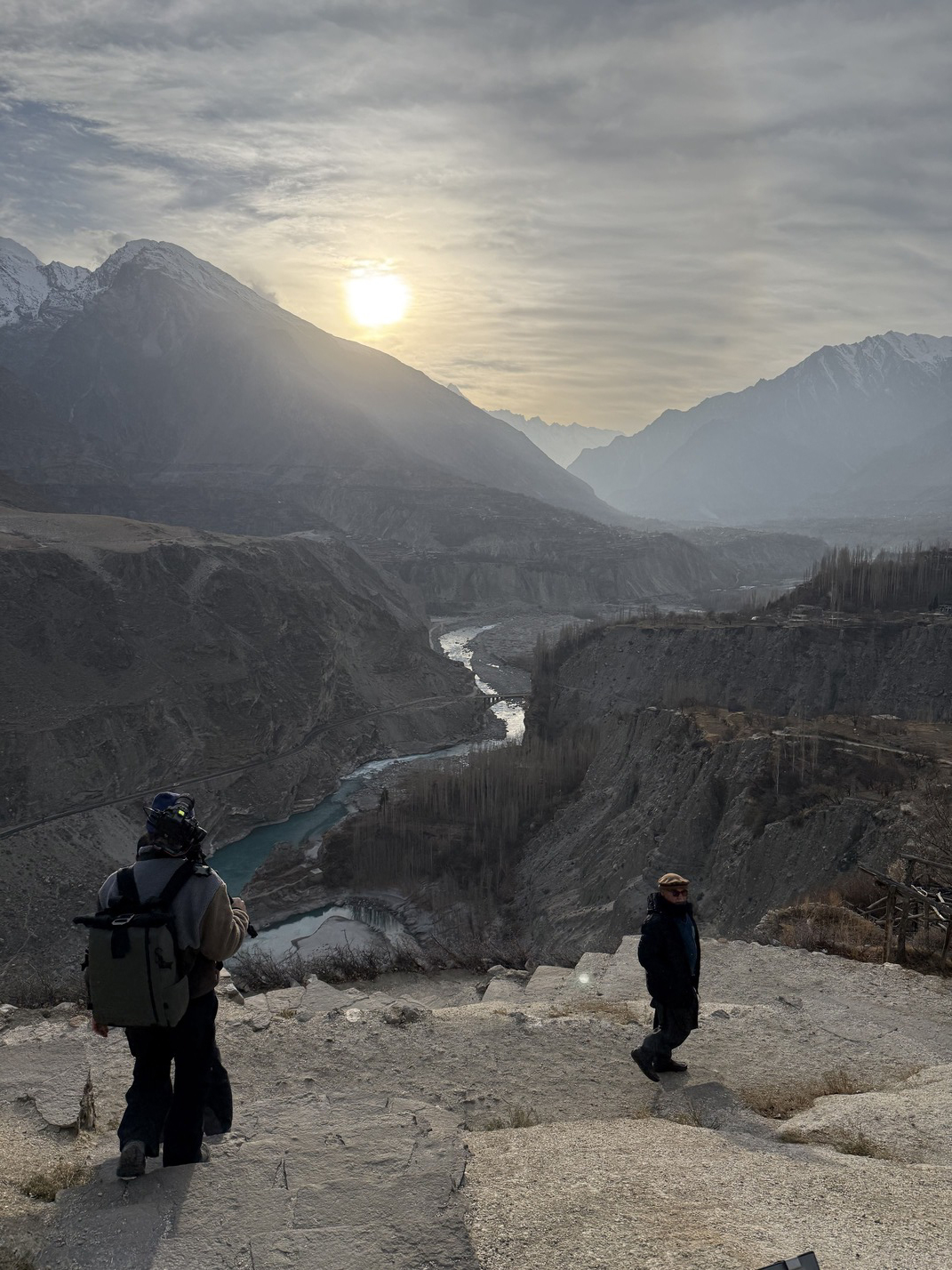From 11 a.m., the flight gets postponed several times. Ultimately, at two o'clock in the afternoon, it turns out that it has been cancelled. There are men outside wearing traditional Pakistani headgear who are not surprised. One of them advises us to take a flight to Skardu in two days' time. From there, it's a four-hour journey to Gilgit. ‘So you'll be there the day after tomorrow,’ he says, bobbing his head. I thought only Indians did that, but apparently it’s a thing here too.