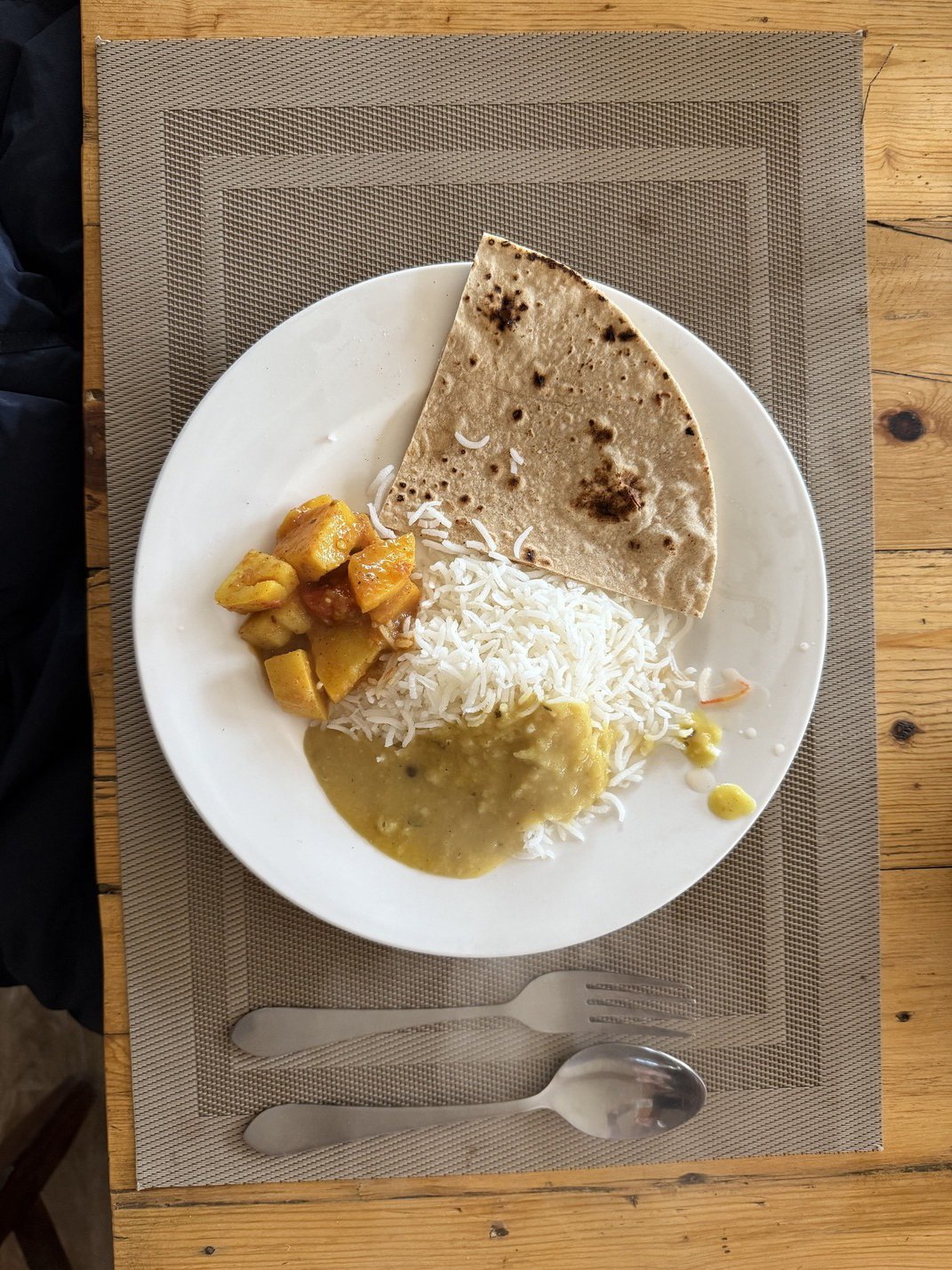 We take photos at a famous suspension bridge. Between every wooden plank is half a metre of open space. A mountain river rages thirty metres below. ‘There's only been one death this year,’ someone reassures us. For my anxious mum, I film myself walking across the bridge without holding on to anything.