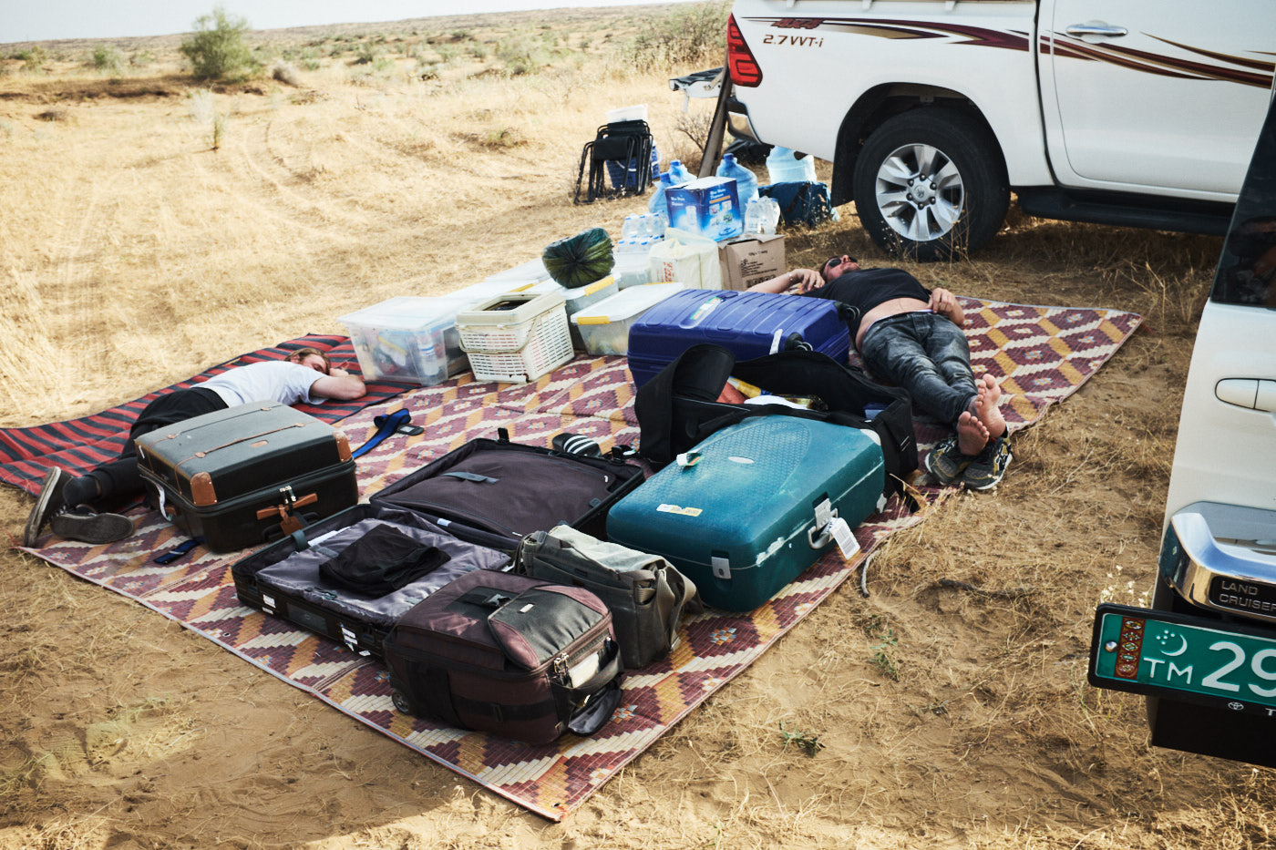 The tourist highlight, the sightseeing destination of Turkmenistan, the one thing that is in every travel guide, is the gas crater. It’s a large hole in the ground, the bottom of which is on fire non-stop. Our tour guide is surprised by our lack of interest in this oversized gas pit. I could’ve made a cool joke about the gas crater. When the beast was finally visible from our car and our guide said, "Look, there's the gas crater," I said, "My friends also call me the gas creator." We were all laughing and roaring of course.